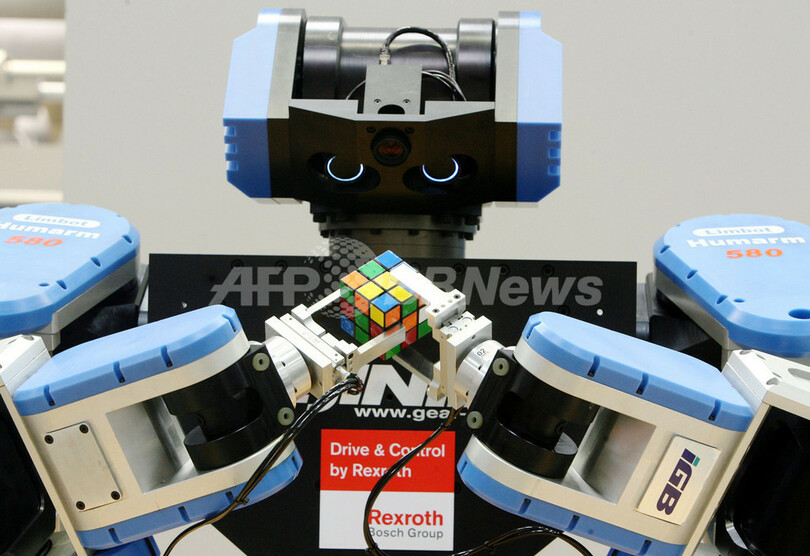 【ハノーバー/ドイツ 14日 AFP】ハノーバー(Hanover)で15日、「ハノーバー・メッセ2007」が開幕する。同博覧会には、世界68か国から産業テクノロジー分野の参加者たちが集まる。開会当日にはアンゲラ・メルケル(Angela Merkel)首相やトルコのレジェプ・タイップ・エルドアン(Recep Tayyip Erdogan)首相も出席予定。写真は14日、ルービックキューブに挑むロボット。(c)AFP/DDP/DAVID HECKER