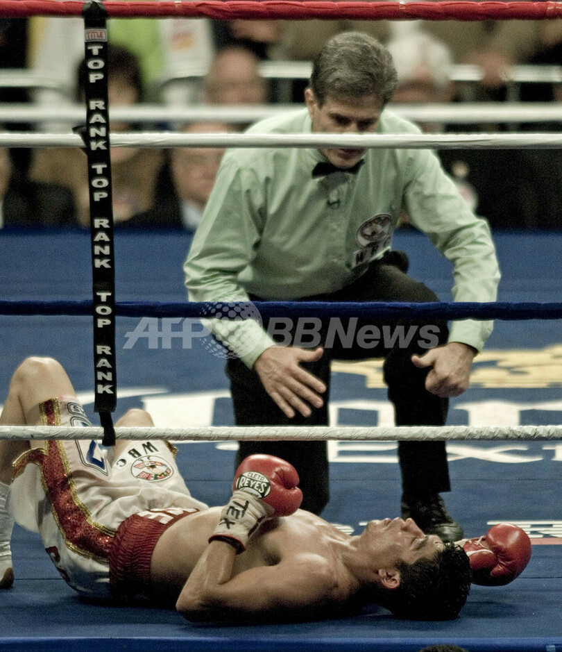 スポーツ スポーツ その他 <ボクシング>パッキャオ ソリスをKOで降し4度目の防衛に成功 - 米国 2007年4月15日 14:34 発信地:米国 [ 北米 米国 ] このニュースをシェア ‹ › ❮ 2/8 ❯ 写真は、レフリーにテンカウントをコールされるソリス。(c)AFP/Paul J. Richards 画像作成中 ! 【サンアントニオ/米国 14日 AFP】ボクシング、WBC世界スーパーフェザー級タイトルマッチ12回戦。王者マニー・パッキャオ(Manny Pacquiao、フィリピン)は、挑戦者ホルヘ・ソリス(Jorge Solis、メキシコ)と対戦。パッキャオは8ラウンド1分16秒でソリスにKO勝ちし、4度目のタイトル防衛に成功した。(c)AFP/Getty Images Jed Jacobsohn スポーツ その他 一覧へ> メディア・報道関係・法人の方向け 写真・動画 購入のお問合せ>