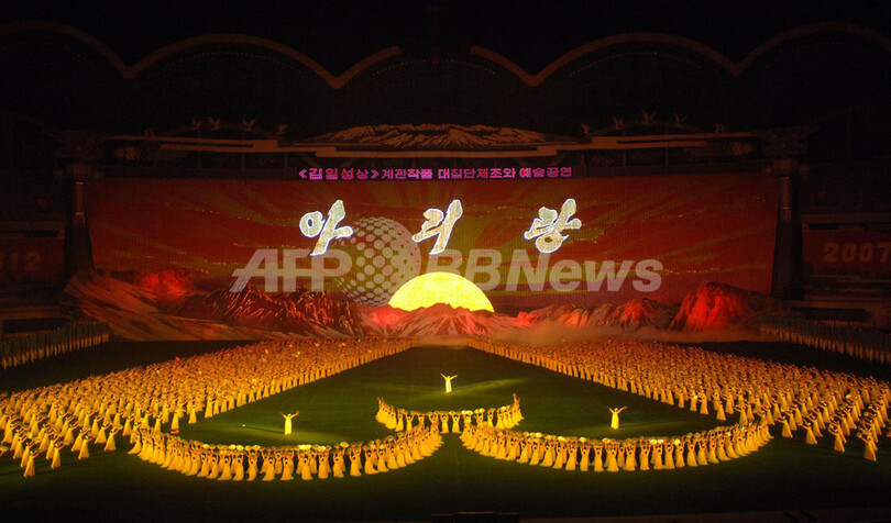 【平壌/北朝鮮 15日 AFP】単調な灰色のビルが立ち並び、極度の貧困状態を隠すように表面のみが取り繕われた平壌(Pyongyang)で、世界に例を見ないアクロバティックな芸術公演が催されている。これにより北朝鮮政府は、権力の強大さを誇示しているのだ。