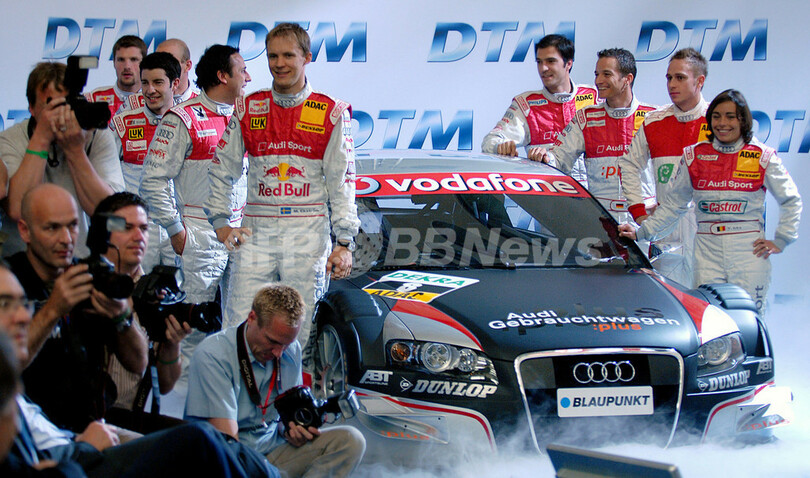 【デュッセルドルフ/ドイツ 15日 AFP】ドイツ・ツーリングカー選手権2007(DTM International Touring Car series 2007)の開幕を控え、アウディ(Audi)とメルセデス・ベンツ(Mercedes-Benz)のレーサーがオープニングイベントに出席した。各レーサーはこの後デュッセルドルフ市内のケーニヒスアレー(Koenigsallee)の通りを走行し、沿道には約18万人が訪れた。07シーズンのドイツ・ツーリングカー選手権は、22日にホッケンハイムで開幕し、10月14日に最終第10戦を迎える。写真は、記念撮影に臨むアウディの(左から)マティアス・エクストローム(Mattias Ekstrom)、クリスチャン・アプト(Christian Abt)、マイク・ロッケンフェラー(Mike Rockenfeller)、トム・クリステンセン(Tom Kristensen)、マーティン・トムチュク(Martin Tomczyk)、ルーカス・ルハー(Lucas Luhr)、ティモ・シャイダー(Timo Scheider)、アダム・キャロル(Adam Carroll)、ヴァニーナ・イクス(Vanina Ickx)。(c)AFP/DDP/MICHAEL GOTTSCHALK
