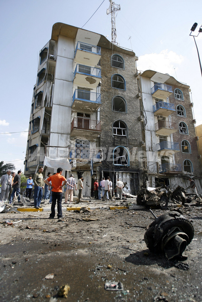 写真は15日、バグダッド中心部の商業地で発生した自爆テロの現場。少なくとも11人が死亡した。(c)AFP/AHMAD AL-RUBAYE