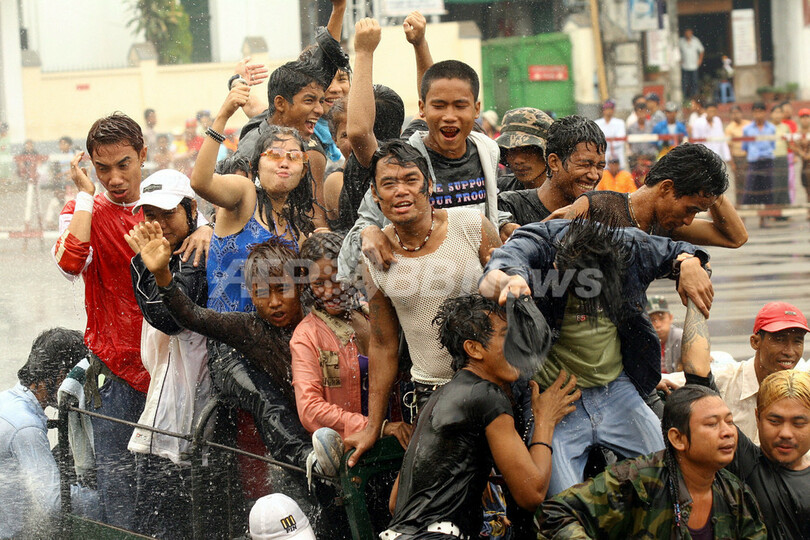 ミャンマーの首都ヤンゴンでは先週末、軍事政権のけん制にも関わらず、仏教徒の新年を迎える人々が町中で盛大なお祭り騒ぎを行った。