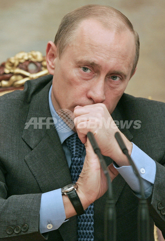 【モスクワ/ロシア 16日 AFP】ウラジーミル・プーチン(Vladimir Putin)大統領は16日、クレムリン(Kremlin)で政府関係者と会合を開いた。その席で同大統領は、数か月に及び核交渉の進展を阻んできたマカオの銀行口座問題を解決できなかったため、北朝鮮が核施設の閉鎖期限を順守しなかったとして米国を非難した。写真は16日、会合に参加するプーチン大統領。(c)AFP/ITAR-TASS/PRESIDENTIAL PRESS SERVICE