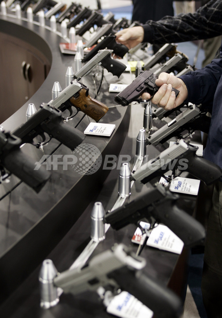 写真は、ミルウォーキー(Milwaukee)で開催された全米ライフル協会(NRA)の年次総会中に行われた拳銃の展示会の様子(2006年5月19日撮影)。(c)AFP/JEFF HAYNES