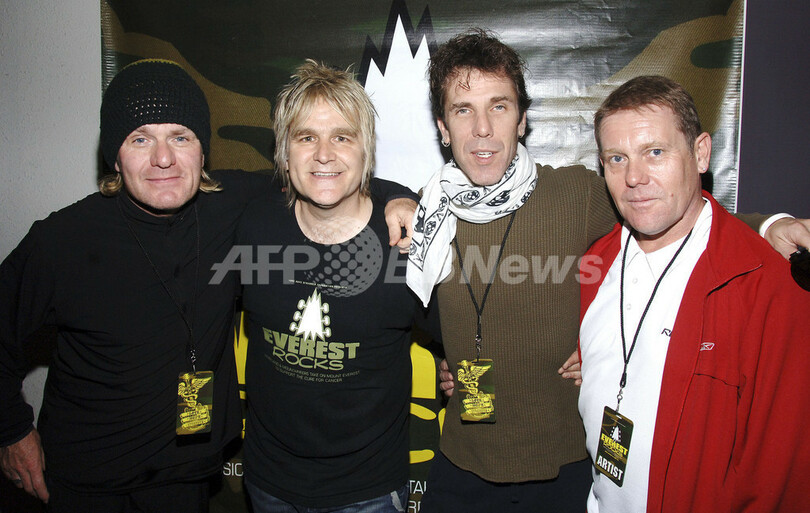 【ニューヨーク/米国 17日 AFP】英国ロックバンド、アラーム(The Alarm)のマイク・ピータース(Mike Peters )らが癌患者支援の為に設立した「The Love Hope Strength Foundation」が主催するチャリティコンサートが16日、ニューヨークシティで行われた。写真は、同イベントに参加したThe CultのBilly Duffy、マイク・ピータース、イングリッシュビート(The English Beat)のデイヴ・ウェインクリング(Dave Wakeling)、ストレイ・キャッツ(The Stray Cats)のスリム・ジム・ファントム(Slim Jim Phantom)。(c)AFP/Getty Images Andrew H. Walker