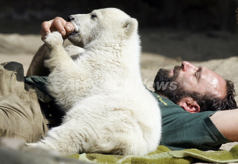 ニュース ライフ こぼれ話 おかえり、クヌート 歯痛も回復? - ドイツ 2007年4月17日 21:19 発信地:ドイツ [ ヨーロッパ ドイツ ] このニュースをシェア ‹ › ❮ 6/6 ❯ 写真は同日、囲いの中で飼育員のThomas Doerfleinさんと遊ぶクヌート。(c)AFP/DDP/MARCUS BRANDT 画像作成中 ! 【ベルリン/ドイツ 17日 AFP】体調不良を理由に一般公開が一時中断されていたベルリン動物園の人気者、ホッキョクグマのクヌート(Knut)が17日、見物客の前に帰ってきた。クヌートは、乳歯の生えかわりに伴う歯痛により、抗生物質の投与を受けていた。写真は同日、囲いの中で飼育員のThomas Doerfleinさんと遊ぶクヌート。(c)AFP/DDP/MARCUS BRANDT ライフ 一覧へ> メディア・報道関係・法人の方向け 写真・動画 購入のお問合せ>
