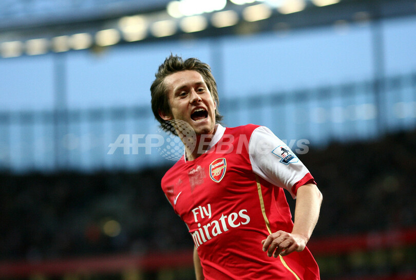 【ロンドン/英国 17日 AFP】サッカー、イングランド・プレミアリーグ・第25節順延分、アーセナル(Arsenal)vsマンチェスター・シティ(Manchester City)。アーセナルのセスク・ファブレガス(Cesc Fabregas)は、後半28分にチーム2点目のゴールを決めて2試合連続ゴールを記録した。試合はアーセナルが3-1で勝利を収め、シーズン18勝目を挙げて勝ち点を62に伸ばした。写真は、得点をサポーターにアピールするセスク。(c)AFP/CHRIS YOUNG