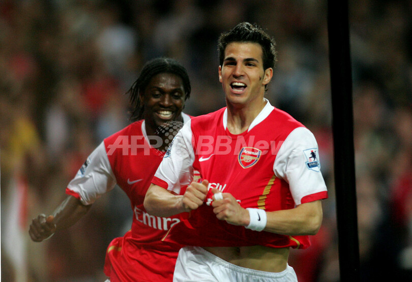 【ロンドン/英国 17日 AFP】サッカー、イングランド・プレミアリーグ・第25節順延分、アーセナル(Arsenal)vsマンチェスター・シティ(Manchester City)。アーセナルのセスク・ファブレガス(Cesc Fabregas)は、後半28分にチーム2点目のゴールを決めて2試合連続ゴールを記録した。試合はアーセナルが3-1で勝利を収め、シーズン18勝目を挙げて勝ち点を62に伸ばした。写真は、得点をサポーターにアピールするセスク。(c)AFP/CHRIS YOUNG