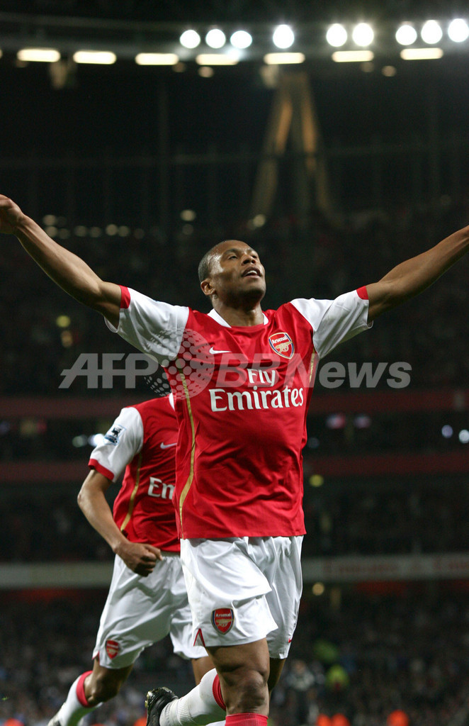 【ロンドン/英国 17日 AFP】サッカー、イングランド・プレミアリーグ・第25節順延分、アーセナル(Arsenal)vsマンチェスター・シティ(Manchester City)。アーセナルのセスク・ファブレガス(Cesc Fabregas)は、後半28分にチーム2点目のゴールを決めて2試合連続ゴールを記録した。試合はアーセナルが3-1で勝利を収め、シーズン18勝目を挙げて勝ち点を62に伸ばした。写真は、得点をサポーターにアピールするセスク。(c)AFP/CHRIS YOUNG