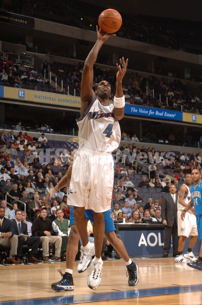 【ワシントンDC/米国 17日 AFP】06-07NBA、ワシントン・ウィザーズ(Washington Wizards)vsオーランド・マジック(Orlando Magic)。ウィザーズのアントワン・ジェイミソン(Antawn Jamison)は、48得点9リバウンドの活躍を見せるも、チームを勝利に導くことは出来なかった。試合は第4Qに逆転を許したウィザーズが95-89でマジックに敗れシーズン41敗目を喫した。写真は、シュートを放つジェイミソン。(c)AFP/Getty Images/NBAE Mitchell Layton