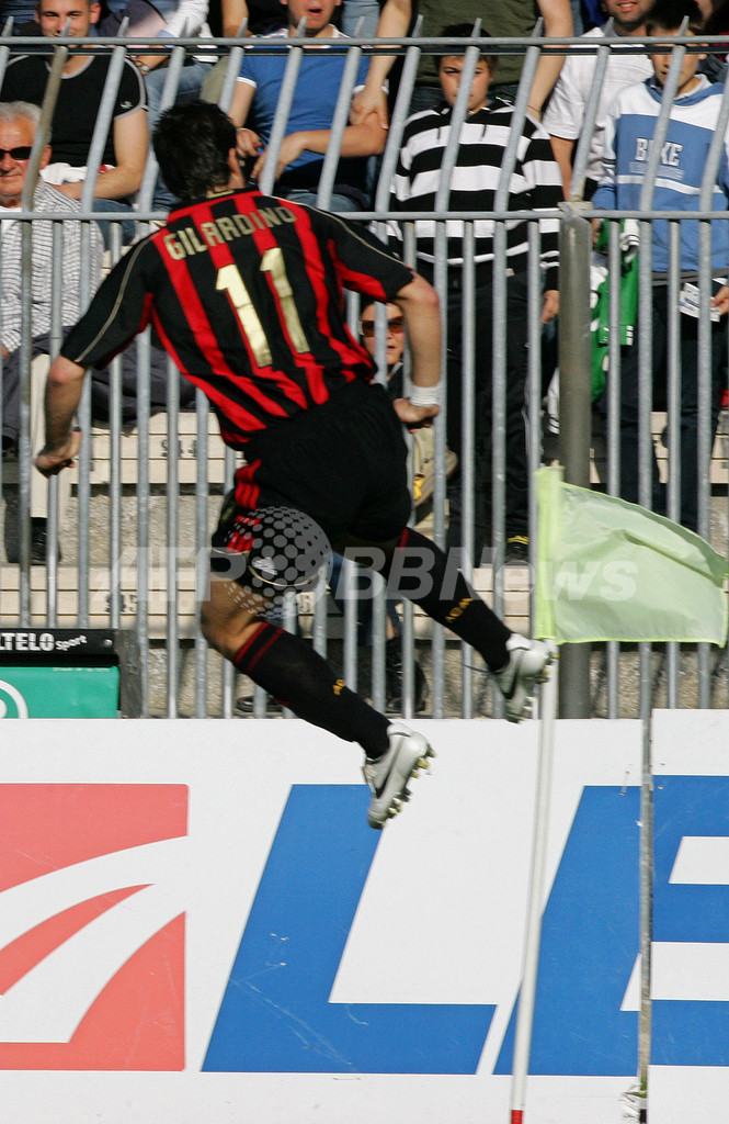 スポーツ サッカー <サッカー セリエA>ミラン 今季最多の5点を奪いアスコリに快勝 - イタリア 2007年4月19日 1:40 発信地:イタリア [ ヨーロッパ イタリア ] このニュースをシェア ‹ › ❮ 14/15 ❯ 写真は、ゴールに歓喜するジラルディーノ。(c)AFP/ANDREAS SOLARO 画像作成中 ! 【アスコリ/イタリア 18日 AFP】サッカー、イタリア・セリエA・第22節順延分、アスコリ(Ascoli)vsACミラン(AC Milan)。試合はカカ(Kaka)が2得点(前半25分、同35分)を挙げるなどミランが今季最多となる5点を奪い5-2で快勝し、3連勝で勝ち点を52に伸ばした。(c)AFP/ANDREAS SOLARO サッカー 一覧へ> メディア・報道関係・法人の方向け 写真・動画 購入のお問合せ>