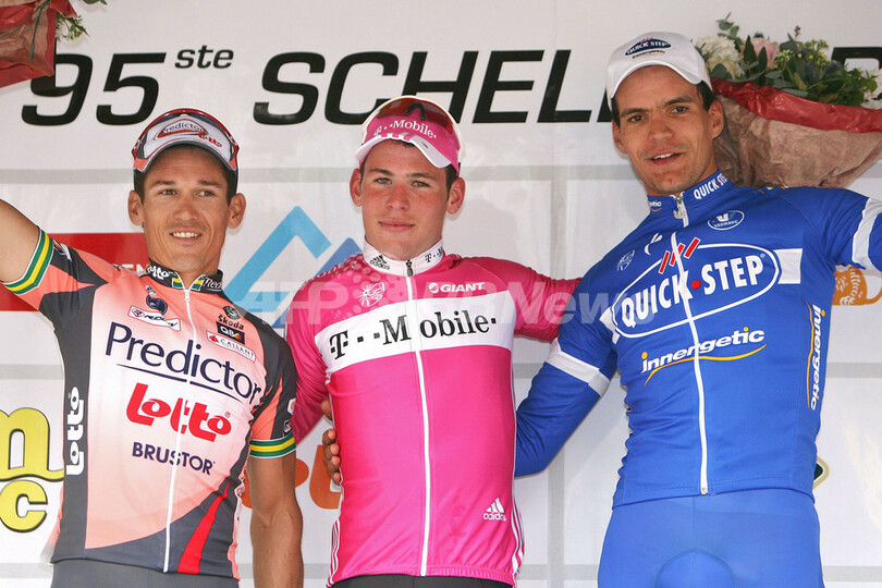 【ショッテン/ベルギー 18日 AFP】自転車レース、第95回シュヘルデプレイス・フラーンデレン(95th Scheldeprijs Vlaanderen)、ワンデイレース(アントワープからショッテン、197キロメートル)。T-モバイル(T-Mobile)のマーク・カヴェンディッシュ(Mark Cavendish、英国)は、4時間09分00秒をマークして優勝を果たした。