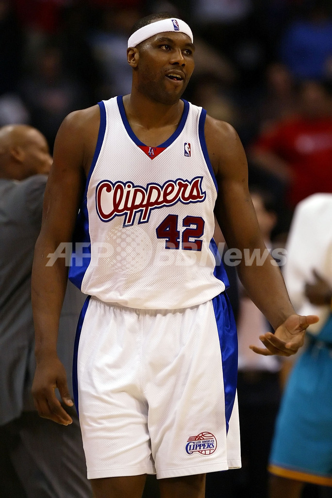 【ロサンゼルス/米国 18日 AFP】06-07NBA、ロサンゼルス・クリッパーズ(Los Angeles Clippers)vsニューオーリンズ/オクラホマシティ・ホーネッツ(New Orleans/Oklahoma City Hornets)。クリッパーズのサム・キャセール(Sam Cassell)はこの試合、ベンチからの出場で14得点を記録。試合は、クリッパーズが83-86でホーネッツに敗れ、通算成績40勝42敗でプレーオフ進出を逃した。(c)AFP/Getty Images Lisa Blumenfeld
