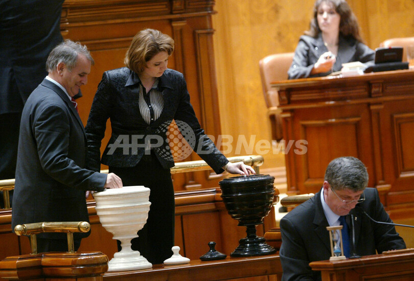 写真は同日、ブカレスト(Bucharest)の議会で行われる投票の様子。(c)AFP/DANIEL MIHAILESCU