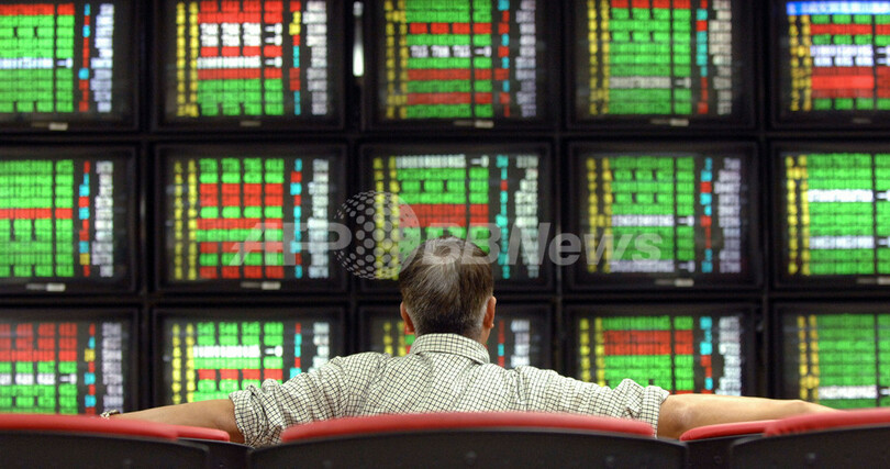【台北/台湾 19日 AFP】19日の台湾株式市場では、午前の取引中にアジアの株式相場が全面安となったことが嫌気され、加権指数は114.68ポイント下落し、1.43%安の7888.63となった。同指数は、高いところでは7991.69、安いところでは7883.92をつけ、台湾株式市場の売買代金は1082億9000万台湾ドル(約3869億2000万円)だった。写真は同日、台北の証券会社で、株価が表示された画面を眺める現地の投資家。(c)AFP/Sam YEH
