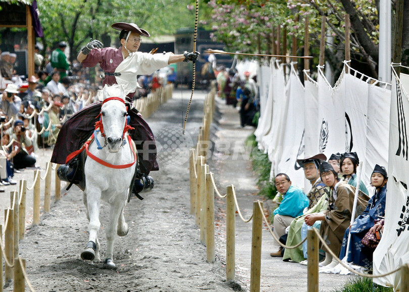 ニュース ライフ 浅草で流鏑馬 開催 - 東京 2007年4月21日 16:16 発信地:東京 [ アジア・オセアニア 東京 ] このニュースをシェア ‹ › ❮ 4/4 ❯ 浅草で流鏑馬 開催 - 東京 画像作成中 ! 【東京 21日 AFP】東京・隅田公園内の特設会場にて21日、「浅草流鏑馬」が開催され、武士の服装を身にまとった射手が馬に乗り滑走し、弓術を披露した。「流鏑馬(やぶさめ)」は、12世紀に始まった、馬術と弓術とを組み合わせた戦の訓練法で、馬に乗って全速力で走りながら弓を射ることは、武士にとって大切な技術とされていた。(c)AFP/Toru YAMANAKA ライフ 一覧へ> メディア・報道関係・法人の方向け 写真・動画 購入のお問合せ>
