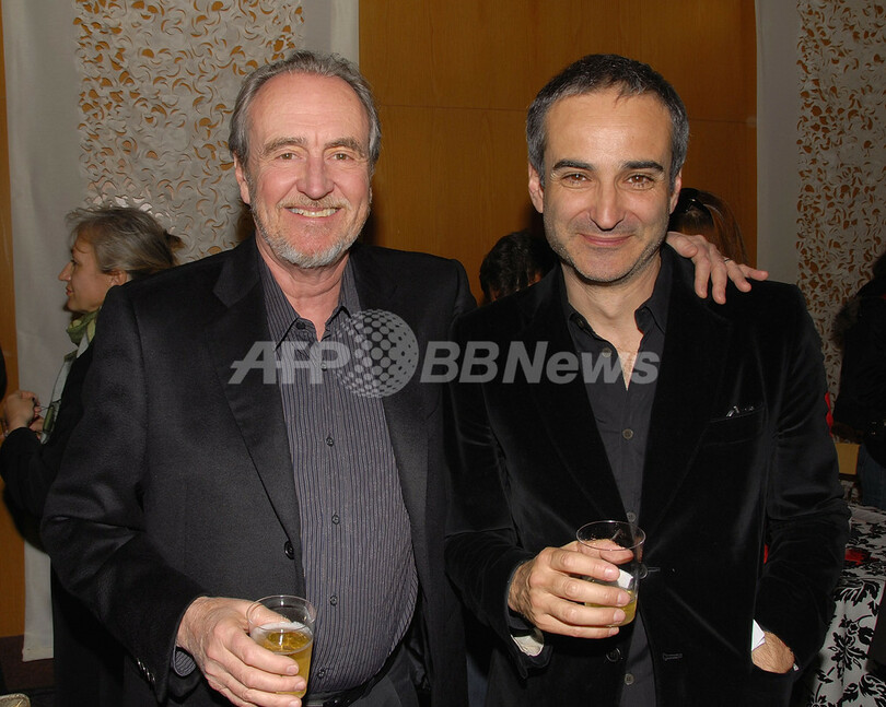 【ロサンゼルス/米国 21日 AFP】16日から22日までハリウッドで開催される「第11回COL・COAフランス映画祭(11th Annual City of Lights, City of Angels, A Week of French Film Premieres in Hollywood)」で20日、オムニバス映画「パリ、ジュテーム(Paris je t’aime)」のロサンゼルスプレミア上映会がアメリカ監督組合シアターコンプレックス(DGA Theatre Complex)で行われた。また、上映会の前にはカクテルパーティーが開催され、キャストやスタッフらが姿を見せた。写真は同パーティーに出席したウェス・クレイヴン(Wes Craven)監督(左)とオリヴィエ・アサヤス(Olivier Assayas)監督。(c)AFP/Getty Images Charley Gallay