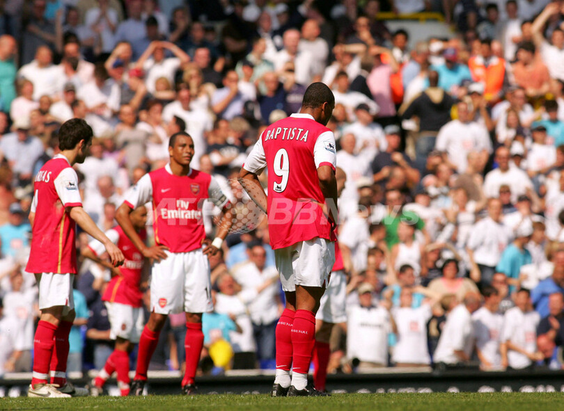 【ロンドン/英国 21日 AFP】サッカー、イングランド・プレミアリーグ・第35節、トッテナム・ホットスパー(Tottenham Hotspur)vsアーセナル(Arsenal)。共にロンドン北部に本拠地を構える両チームのノースロンドンダービーは2-2の引き分けに終わった。写真は、後半ロスタイムに同点ゴールを決められ落胆するアーセナルの(左から)セスク・ファブレガス(Cesc Fabregas)、ジルベルト・シウヴァ(Gilberto Silva)、ジュリオ・バプティスタ(Julio Baptista)。(c)AFP/CHRIS YOUNG