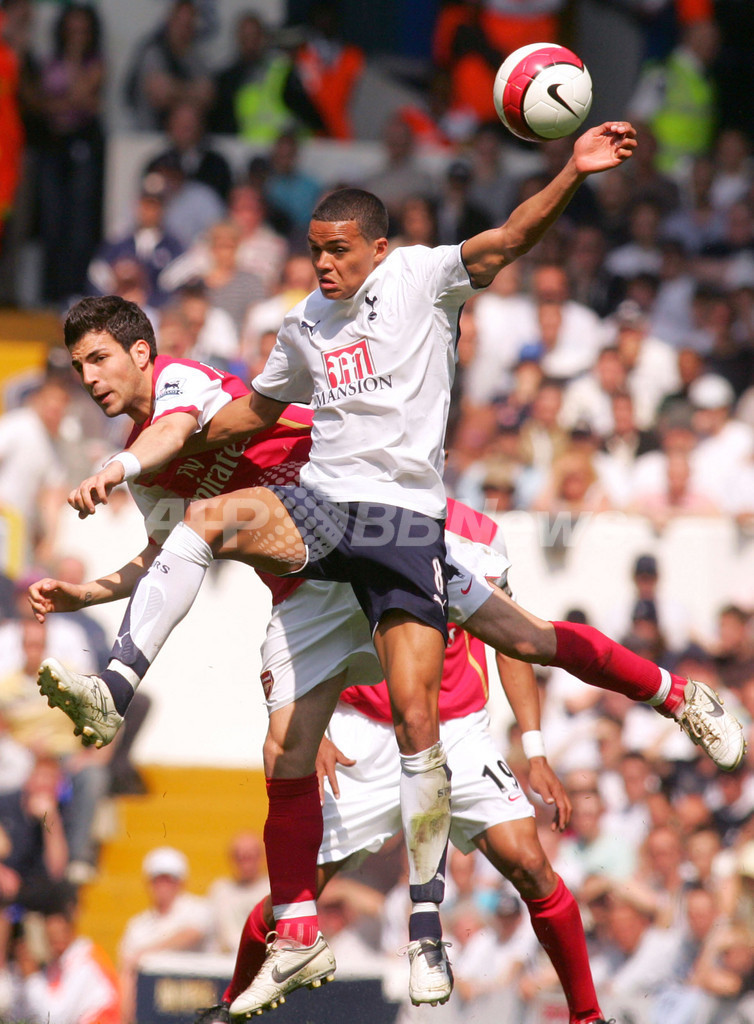 【ロンドン/英国 21日 AFP】サッカー、イングランド・プレミアリーグ・第35節、トッテナム・ホットスパー(Tottenham Hotspur)vsアーセナル(Arsenal)。共にロンドン北部に本拠地を構える両チームのノースロンドンダービーは2-2の引き分けに終わった。写真は、後半ロスタイムに同点ゴールを決められ落胆するアーセナルの(左から)セスク・ファブレガス(Cesc Fabregas)、ジルベルト・シウヴァ(Gilberto Silva)、ジュリオ・バプティスタ(Julio Baptista)。(c)AFP/CHRIS YOUNG