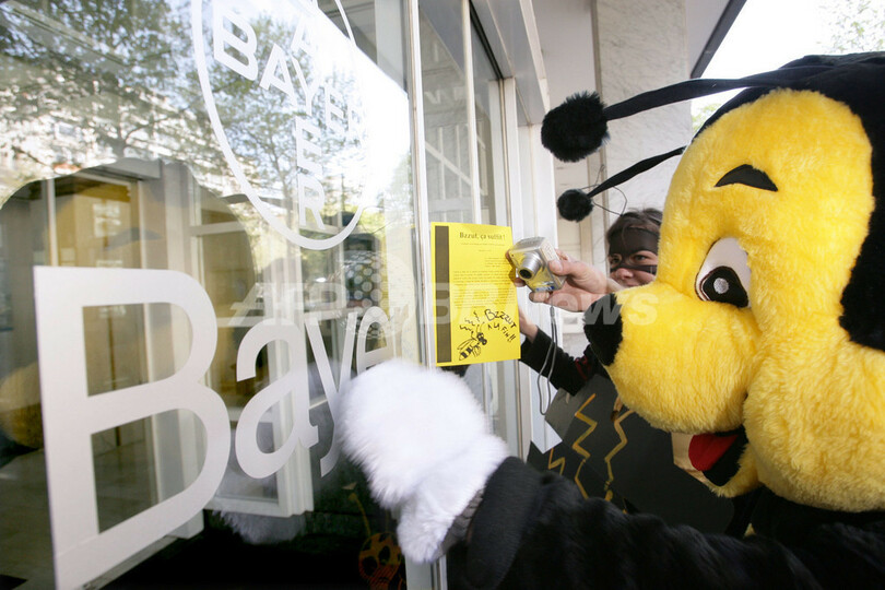 ニュース 環境・科学 ハチの姿で抗議活動 - ドイツ 2007年4月22日 0:06 発信地:ドイツ [ ヨーロッパ ドイツ ] このニュースをシェア ‹ › ❮ 6/6 ❯ 写真は同日、ハチの衣装を身にまとい、抗議活動に参加する人々。(c)AFP/JOHN THYS 画像作成中 ! 【ブリュッセル/ドイツ 22日 AFP】医薬品大手バイエル(Bayer)の殺虫剤を非難するグループは21日、ブリュッセル(Brussels)の同社本社前でハチの姿に扮し抗議活動を行った。同社の殺虫剤が市場に出回ってから、毎年約300万匹のハチが死んでいるという。写真は同日、ハチの衣装を身にまとい、抗議活動に参加する人々。(c)AFP/JOHN THYS 環境・科学 一覧へ> メディア・報道関係・法人の方向け 写真・動画 購入のお問合せ>