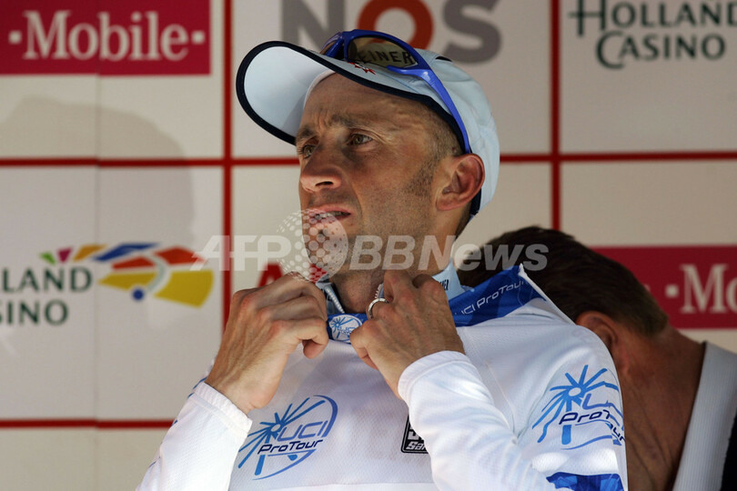 【フォルケンブルグ/オランダ 22日 AFP】自転車レース、第42回アムステルゴールドレース(42th Amstel Gold Race)、ワンデイレース(マーストリヒトからフォルケンブルグ、252キロメートル)。ゲロルシュタイナー(Gerolsteiner)のステファン・シューマッハ(Stefan Schumacher、ドイツ)は、6時間11分49秒を記録して優勝を飾った。(c)AFP/VINCENT JANNINK