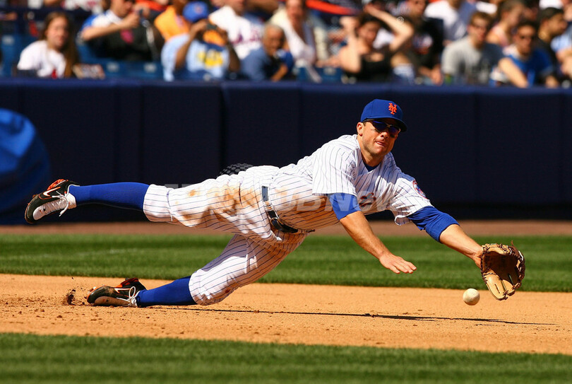 【ニューヨーク/米国 22日 AFP】07MLB、ニューヨーク・メッツ(New York Mets)vsアトランタ・ブレーブス(Atlanta Braves)。1番・二塁で先発したブレーブスのケリー・ジョンソン(Kelly Johnson)は、1回に先頭打者本塁打、6-6の同点で迎えた8回には決勝の3点本塁打を放つなど4打数3安打4打点の活躍でチームを勝利に導いた。試合はブレーブスが9-6でメッツを破り、今季12勝目を挙げた。(c)AFP/Getty Images Al Bello
