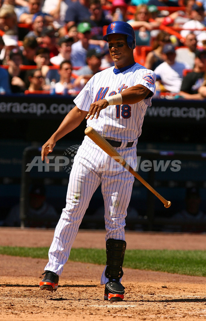 【ニューヨーク/米国 22日 AFP】07MLB、ニューヨーク・メッツ(New York Mets)vsアトランタ・ブレーブス(Atlanta Braves)。1番・二塁で先発したブレーブスのケリー・ジョンソン(Kelly Johnson)は、1回に先頭打者本塁打、6-6の同点で迎えた8回には決勝の3点本塁打を放つなど4打数3安打4打点の活躍でチームを勝利に導いた。試合はブレーブスが9-6でメッツを破り、今季12勝目を挙げた。(c)AFP/Getty Images Al Bello