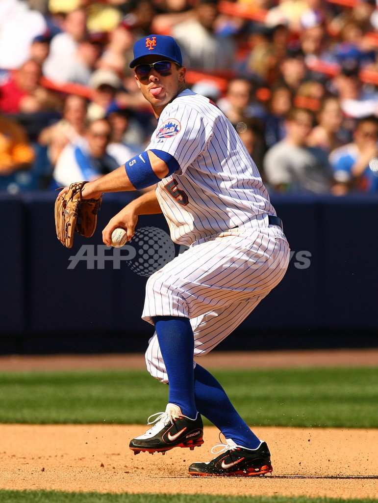 【ニューヨーク/米国 22日 AFP】07MLB、ニューヨーク・メッツ(New York Mets)vsアトランタ・ブレーブス(Atlanta Braves)。1番・二塁で先発したブレーブスのケリー・ジョンソン(Kelly Johnson)は、1回に先頭打者本塁打、6-6の同点で迎えた8回には決勝の3点本塁打を放つなど4打数3安打4打点の活躍でチームを勝利に導いた。試合はブレーブスが9-6でメッツを破り、今季12勝目を挙げた。(c)AFP/Getty Images Al Bello