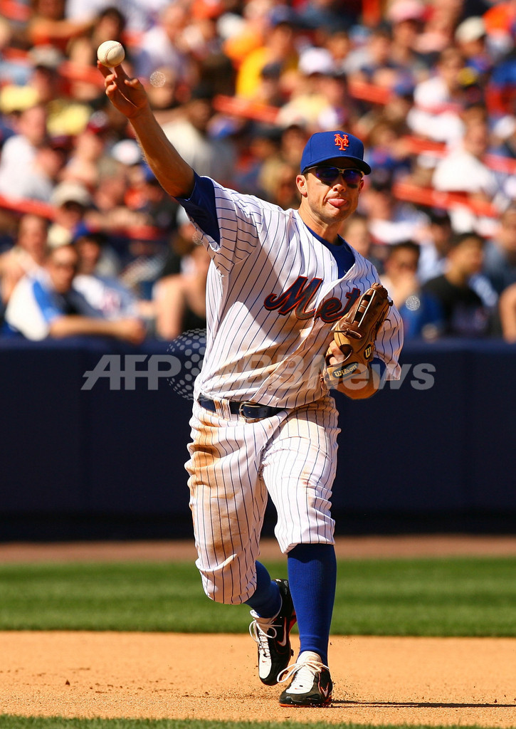 【ニューヨーク/米国 22日 AFP】07MLB、ニューヨーク・メッツ(New York Mets)vsアトランタ・ブレーブス(Atlanta Braves)。1番・二塁で先発したブレーブスのケリー・ジョンソン(Kelly Johnson)は、1回に先頭打者本塁打、6-6の同点で迎えた8回には決勝の3点本塁打を放つなど4打数3安打4打点の活躍でチームを勝利に導いた。試合はブレーブスが9-6でメッツを破り、今季12勝目を挙げた。(c)AFP/Getty Images Al Bello