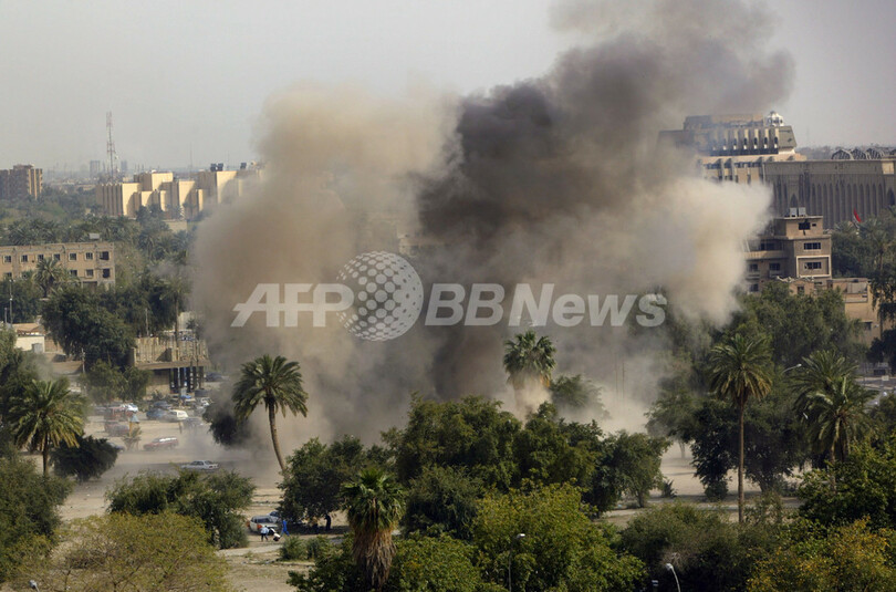 写真は23日、バグダッド中心部グリーンゾーン付近で発生した自動車爆弾による爆発で立ち上る煙。(c)AFP/ALI AL-SAADI