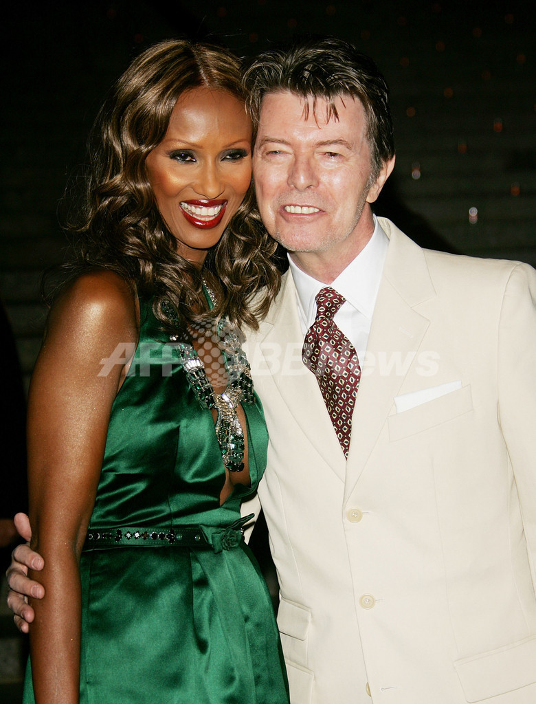【ニューヨーク/米国 25日 AFP】ニューヨーク市内で、4月25日から5月6日まで第6回トライベッカ映画祭(Tribeca Film Festival)が行われる。開幕を記念して24日、雑誌「ヴァニティ・フェア(Vanity Fair)」主催のパーティーが行われた。写真は会場に姿を現したミュージシャンのデヴィッド・ボウイ(David Bowie、右)と妻でモデルのイマン(Iman)。(c)AFP/Getty Images Evan Agostini