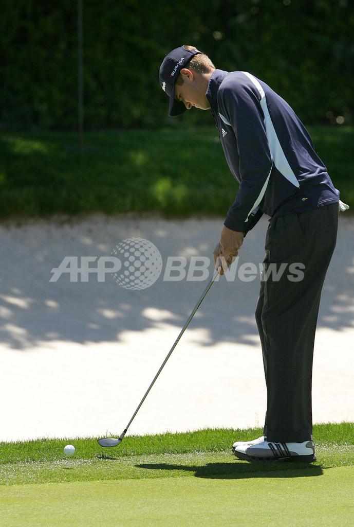 【テキサス/米国 26日 AFP】ゴルフ、米国男子ツアー第17戦・EDSバイロンネルソン選手権(EDS Byron Nelson Championship 2007)初日。米国のショーン・オヘア(Sean O’Hair)は、7バーディー、2ボギーでスコアを5アンダーとし、単独首位に立った。写真は、17番ホールでバンカーショットを放つオヘア。(c)AFP/Getty Images Stephen Dunn