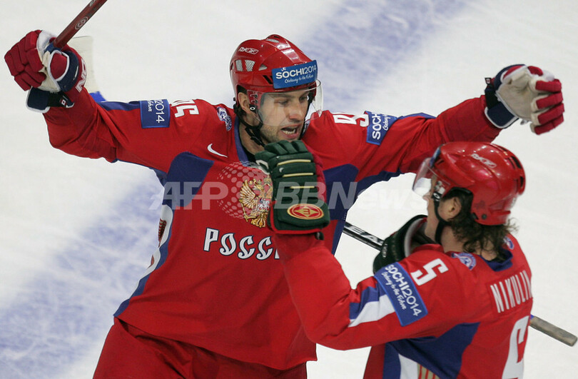 スポーツ ウインタースポーツ <アイスホッケー 世界選手権大会2007>ロシア デンマークに大勝 - ロシア 2007年4月28日 4:13 発信地:ロシア [ ロシア・CIS ロシア ] このニュースをシェア ‹ › ❮ 6/6 ❯ 写真は試合に勝利し歓喜するロシアの選手。(c)AFP/ALEXANDER NEMENOV 画像作成中 ! 【モスクワ/ロシア 27日 AFP】アイスホッケー、世界選手権大会(2007 IIHF World Championship)、予選ラウンド・グループD、ロシアvsデンマーク。試合は9-1でロシアが勝利を収めた。写真は得点を決め歓喜するロシアのPetr Schastlivy(奥)。(c)AFP/ALEXANDER NEMENOV ウインタースポーツ 一覧へ> メディア・報道関係・法人の方向け 写真・動画 購入のお問合せ>