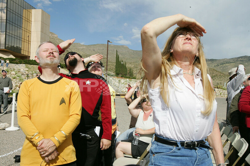・ドゥーアン(James Doohan)氏の遺灰を積んだロケットの打ち上げを翌日に控えた27日、熱烈なスタートレックファンを含む100人以上の人々が最後の別れを告げるため、アラマゴードに集まった。