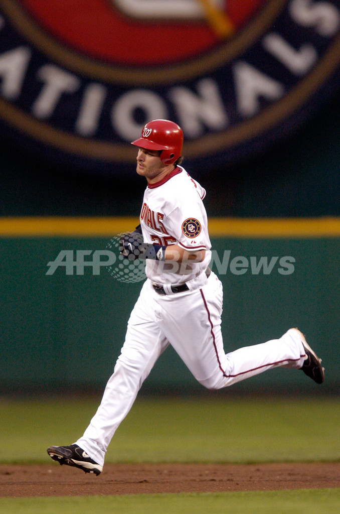 【ワシントンD.C./米国 27日 AFP】07MLB、ニューヨーク・メッツ(New York Mets)vsワシントン・ナショナルズ(Washington Nationals)。5番・右翼で先発出場したナショナルズのオースティン・カーンズ(Austin Kearns)は、初回に今季2号3ランホームランを放ち、チームの勝利に貢献した。カーンズはこの試合で、4打数1安打3打点1得点をマークした。試合は4-3でナショナルズが勝利を収め、2連勝を果たした。(c)AFP/Getty Images Greg Fiume