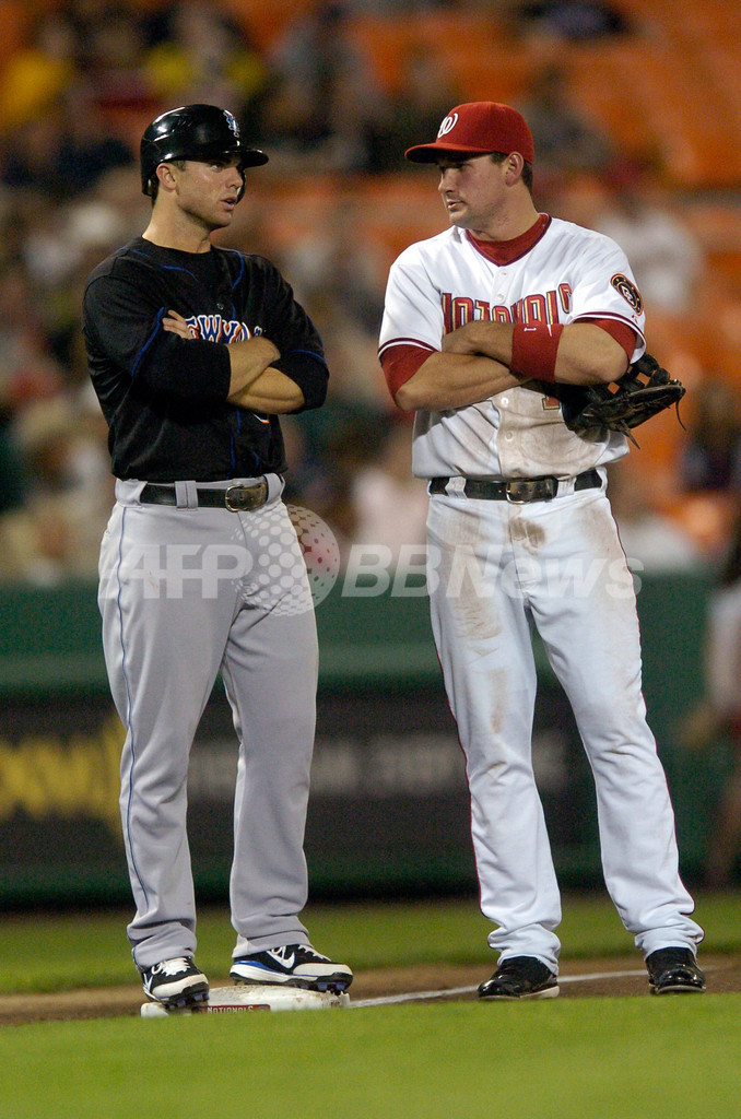 【ワシントンD.C./米国 27日 AFP】07MLB、ニューヨーク・メッツ(New York Mets)vsワシントン・ナショナルズ(Washington Nationals)。5番・右翼で先発出場したナショナルズのオースティン・カーンズ(Austin Kearns)は、初回に今季2号3ランホームランを放ち、チームの勝利に貢献した。カーンズはこの試合で、4打数1安打3打点1得点をマークした。試合は4-3でナショナルズが勝利を収め、2連勝を果たした。(c)AFP/Getty Images Greg Fiume