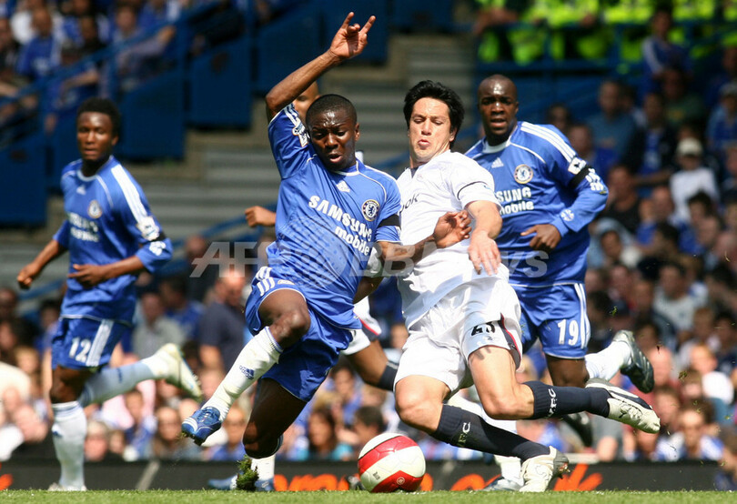 【ロンドン 28日 AFP】サッカー、イングランド・プレミアリーグ・第36節、チェルシー(Chelsea)vsボルトン・ワンダラーズ(Bolton Wanderers)。試合は2-2のドローに終わり、2位チェルシーと今節勝利した首位マンチェスター・ユナイテッド(Manchester United)の勝ち点差は5に開いた。写真は、ゴールポストに手をつくチェルシーのディディエ・ドログバ(Didier Drogba)。(c)AFP/CHRIS YOUNG