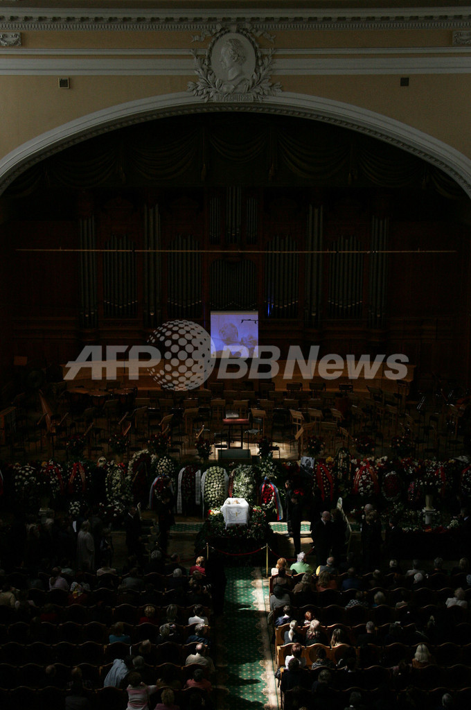 写真は同日、追悼コンサートでロストロポービッチ氏に最後の別れを告げる人々。(c)AFP/ALEXANDER TITORENKO