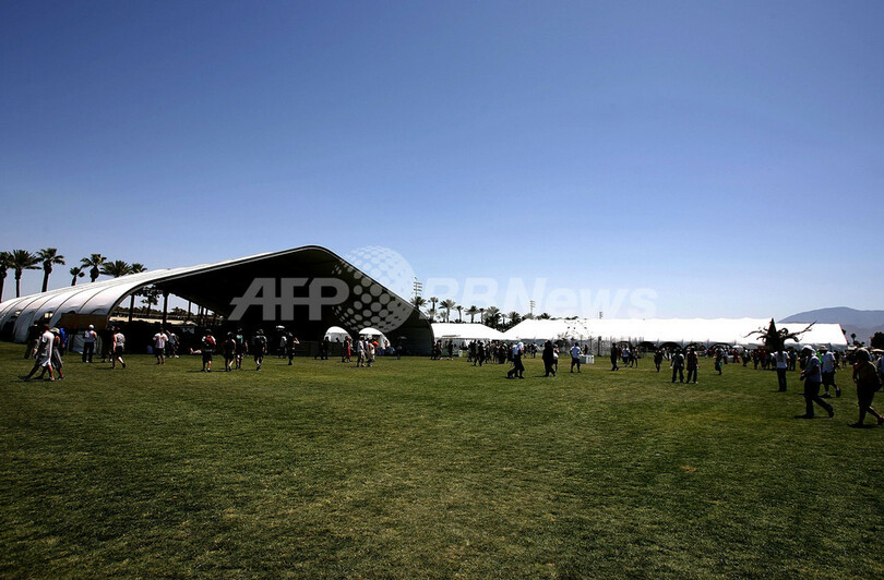 【インディオ/米国 29日 AFP】27日から29日までエンパイア・ポロ・フィールド(Empire Polo Field)で開催される「コーチェラ・ミュージック・フェスティバル(Coachella Music Festival)」が27日に初日を迎え、多くのミュージシャンが演奏を行った。写真はパフォーマンスを披露するオブ・モントリオール(Of Montreal)のフロントマン、ケヴィン・バーンズ(Kevin Barnes)。(c)AFP/Getty Images Frazer Harrison