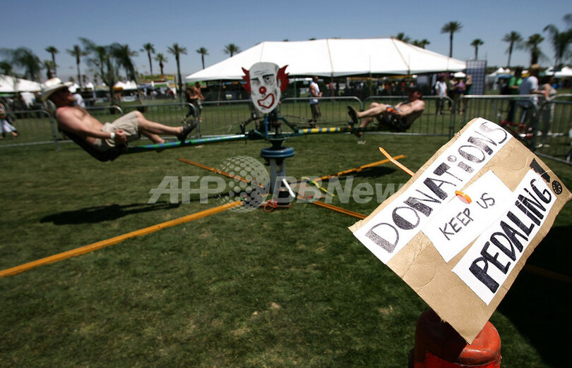 【インディオ/米国 29日 AFP】27日から29日までエンパイア・ポロ・フィールド(Empire Polo Field)で開催される「コーチェラ・ミュージック・フェスティバル(Coachella Music Festival)」が27日に初日を迎え、多くのミュージシャンが演奏を行った。写真はパフォーマンスを披露するオブ・モントリオール(Of Montreal)のフロントマン、ケヴィン・バーンズ(Kevin Barnes)。(c)AFP/Getty Images Frazer Harrison