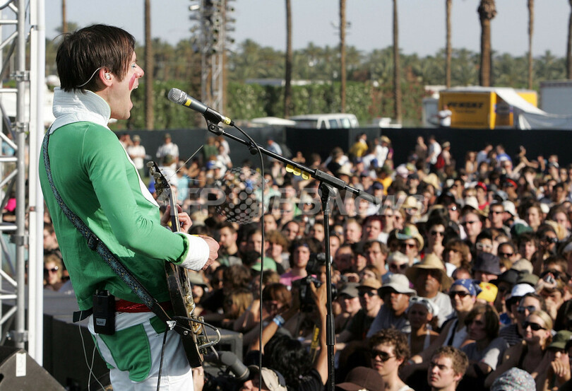 【インディオ/米国 29日 AFP】27日から29日までエンパイア・ポロ・フィールド(Empire Polo Field)で開催される「コーチェラ・ミュージック・フェスティバル(Coachella Music Festival)」が27日に初日を迎え、多くのミュージシャンが演奏を行った。写真はパフォーマンスを披露するオブ・モントリオール(Of Montreal)のフロントマン、ケヴィン・バーンズ(Kevin Barnes)。(c)AFP/Getty Images Frazer Harrison