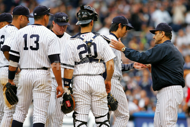 ヤンキースは、4回裏にホルへ・ポサダ(Jorge Posada)の2点本塁打で先制し、さらに、6回にメルキー・カブレラ(Melky Cabrera)の適時打でポサダが本塁に生還し3点目を挙げた。その後、ヤンキースは8回表に1点を返されたが、守護神マリアーノ・リベラ(Mariano Rivera)が9回から登板し1安打を許したが無失点に抑えて8試合振りに勝利を掴んだ。(c)AFP/Getty Images Chris Trotman