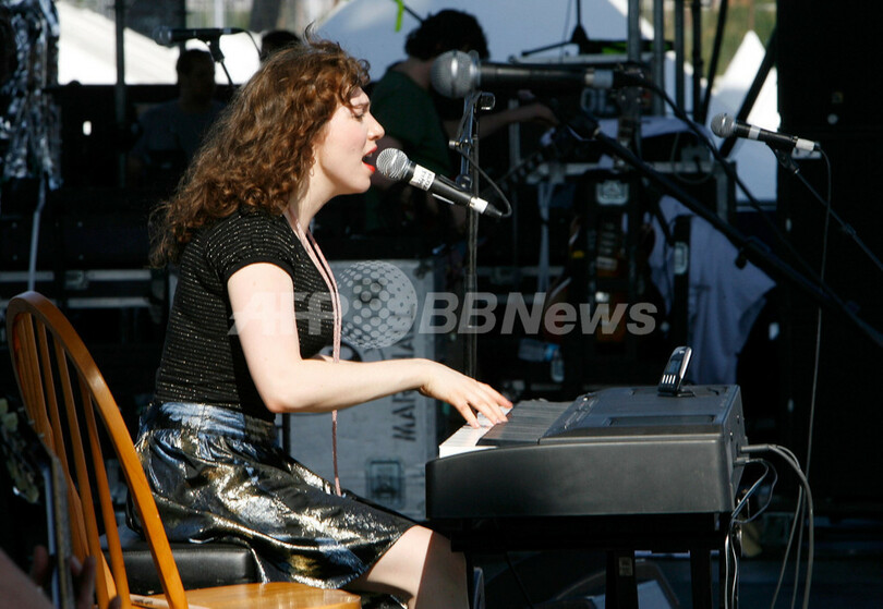 【インディオ/米国 29日 AFP】エンパイア・ポロ・フィールド(Empire Polo Field)で開催中の「コーチェラ・ミュージック・フェスティバル(Coachella Music Festival)」が28日に2日目を迎え、多くのミュージシャンが演奏を行った。写真はパフォーマンスを披露するシンガー・ソングライター/ピアニストのレジーナ・スペクター(Regina Spektor)。(c)AFP/Getty Images Kevin Winter