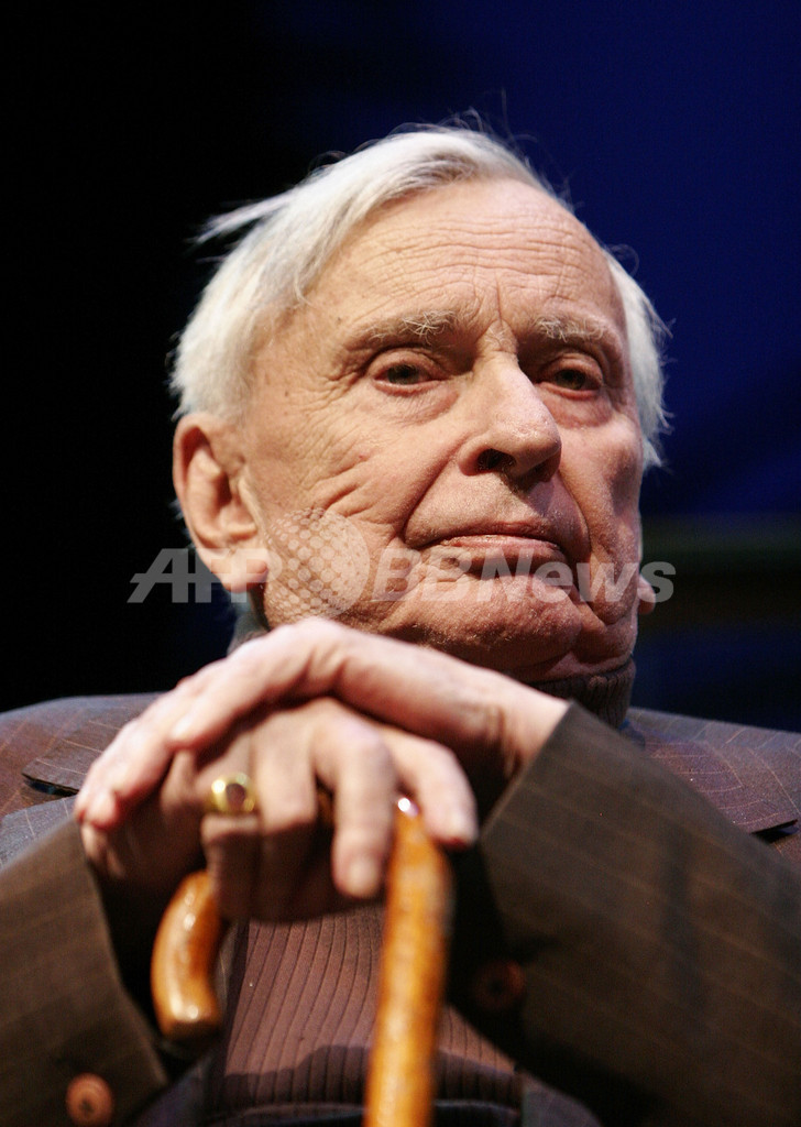 【ロサンゼルス/米国 30日 AFP】第12回ロサンゼルス・タイムズ・ブックフェスティバル(12th Annual LA Times Festival of Books)が28日に初日を迎え、作家のゴア・ヴィダル(Gore Vidal)氏が参加した。写真は、カリフォルニア大学教授で作家のジョン・ウィーナー(Jon Wiener)氏によるインタビューに応じるゴア・ヴィダル氏。(C)AFP/Getty Images Charley Gallay