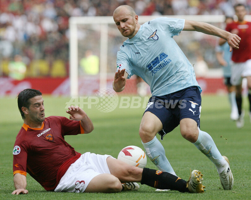 スポーツ サッカー <サッカー セリエA>ローマダービーはスコアレスドローに終わる - イタリア 2007年4月30日 0:16 発信地:イタリア [ ヨーロッパ イタリア ] このニュースをシェア ‹ › ❮ 5/31 ❯ 写真は、ラツィオのトマーゾ・ロッキ(%%Tommaso Rocchi%%)にスライディングタックルを仕掛けるローマのクリスティアン・キヴ(%%Cristian Chivu%%)。(c)AFP/ALBERTO PIZZOLI 画像作成中 ! 【ローマ 29日 AFP】サッカー、イタリア・セリエA・第34節、ASローマ(AS Roma)vsラツィオ(SS Lazio)。試合は両チーム共に決定力を欠き得点を挙げるには至らず、ローマダービーはスコアレスドローに終わった。写真は、決定機を逃し頭を抱えるローマのダニエレ・デ・ロッシ(Daniele De Rossi)。(c)AFP/FILIPPO MONTEFORTE サッカー 一覧へ> メディア・報道関係・法人の方向け 写真・動画 購入のお問合せ>