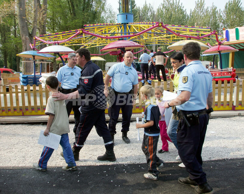 ニュース 社会 遊園地のアトラクションが落下、23人負傷 - フランス 2007年4月30日 2:31 発信地:フランス [ ヨーロッパ フランス ] このニュースをシェア ‹ › ❮ 2/3 ❯ 写真は同日、警察官に付き添われる事故で負傷した子どもたち。(c)AFP/DENIS CHARLET 画像作成中 ! 【トゥルヌエム・シュール・ラ・エム/フランス 30日 AFP】北部のトゥルヌエム・シュール・ラ・エム(Tournehem-sur-la-Hem)の遊園地で29日、アトラクションの1つであるメリーゴーランド、「ザ・パラシュート」が突然地面に落下し、6人の子どもを含む23人が負傷した。写真は同日、事故後にメリーゴーランドを調べる警察官。(c)AFP/DENIS CHARLET 社会 一覧へ> メディア・報道関係・法人の方向け 写真・動画 購入のお問合せ>