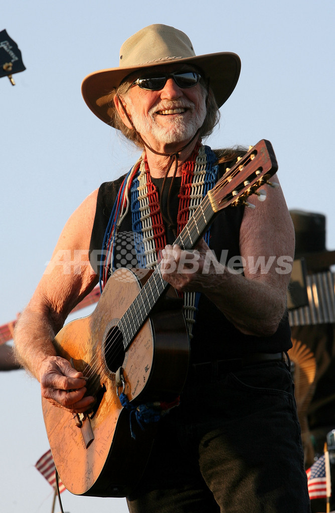 【インディオ/米国 30日 AFP】エンパイア・ポロ・フィールド(Empire Polo Field)で開催中の「コーチェラ・ミュージック・フェスティバル(Coachella Music Festival)」が29日に3日目を迎え、多くのミュージシャンが演奏を行った。写真は、パフォーマンスを行うカントリー界の大御所ウィリー・ネルソン(Willie Nelson)。(C)AFP/Getty Images Michael Buckner