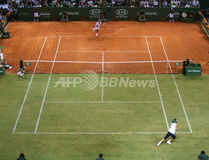 【パルマ・デ・マジョルカ/スペイン 2日 AFP】男子テニス世界ランキング2位でクレーコート72連勝中のラファエル・ナダル(Rafael Nadal、スペイン)と、同ランク1位で芝コート48連勝中のロジャー・フェデラー(Roger Federer、スイス)は、クレーと芝が半面ずつのコートによるエキシビションマッチ「The Battle of the Surfaces」で対戦し、ナダルがセットカウント2-1(7-5、4-6、7-6)でフェデラーから勝利を収めた。