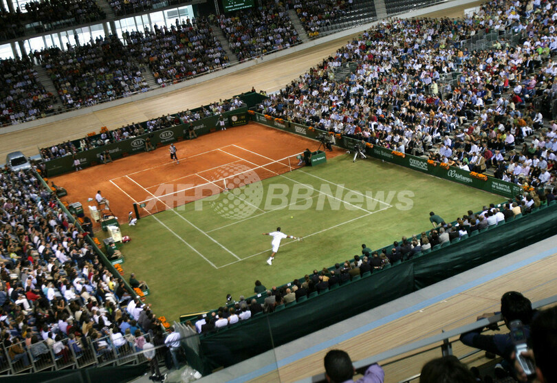 【パルマ・デ・マジョルカ/スペイン 2日 AFP】男子テニス世界ランキング2位でクレーコート72連勝中のラファエル・ナダル(Rafael Nadal、スペイン)と、同ランク1位で芝コート48連勝中のロジャー・フェデラー(Roger Federer、スイス)は、クレーと芝が半面ずつのコートによるエキシビションマッチ「The Battle of the Surfaces」で対戦し、ナダルがセットカウント2-1(7-5、4-6、7-6)でフェデラーから勝利を収めた。