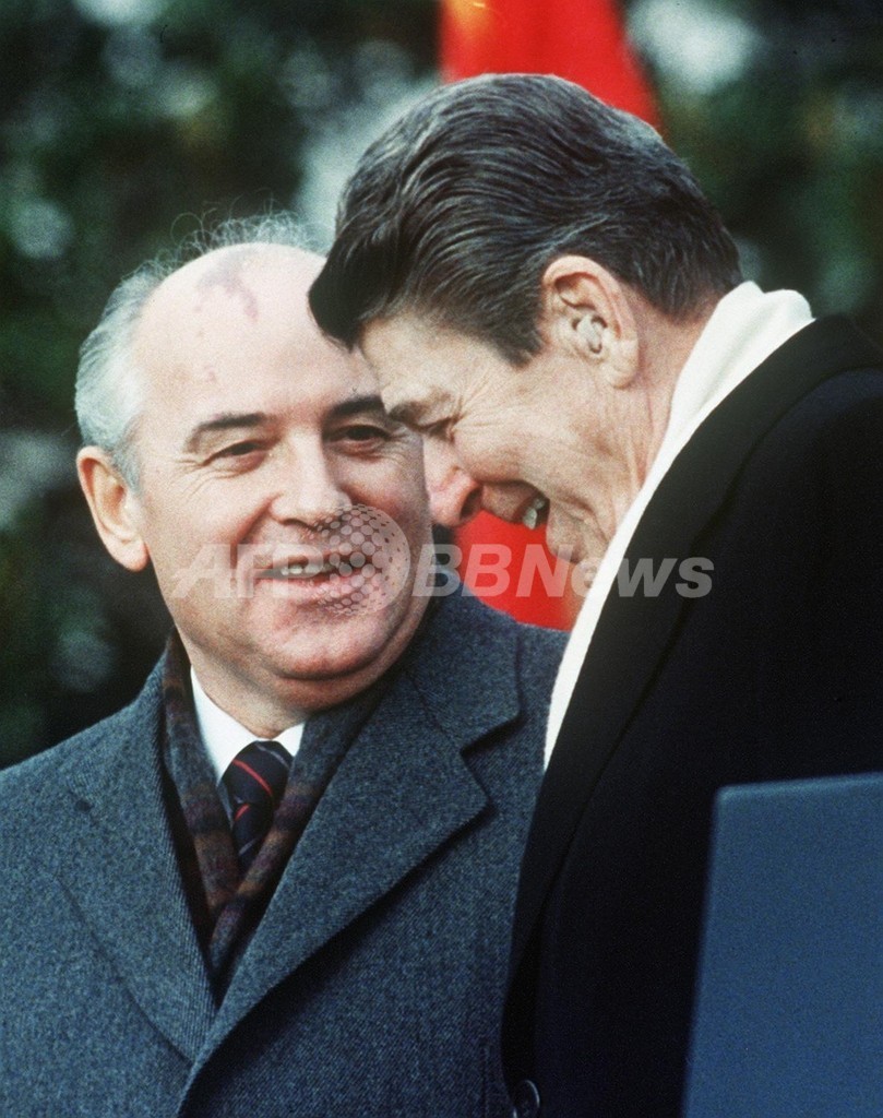 米ソ核軍拡競争終結の交渉相手だったのは、当時のソビエト共産党書記長、ミハイル・ゴルバチョフ(Mikhail Gorbachev)氏。レーガン大統領といえば冷戦を終結に導いたことが知られているが、ゴルバチョフ氏との個人的な関係もよく知られている。
